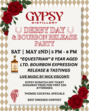 Celebrate Derby Day in style at Gypsy Distillery’s annual Derby Day & Bourbon Release Party! Join us on Saturday, May 2nd from 5–8 PM for an unforgettable evening featuring the exclusive release of our “Equestrian” 8-Year Aged Limited Bourbon Expression.