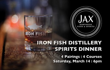 Join Jax Northside for a special spirits dinner celebrating a true passion for bourbon and a commitment to supporting local craft. In partnership with Iron Fish Distillery, this thoughtfully curated evening features a four course menu expertly paired with distinctive Iron Fish Distillery Spirits, plus Iron Fish Distillery reps will be on-site to share insights into their process, flavor profiles, and the art of Michigan-made spirits. Perfect for longtime bourbon lovers and curious sippers alike.