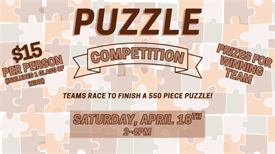 Grab your team and get ready for a fun (and slightly competitive) afternoon! Join us for a Puzzle Competition where teams of four will race to complete the same 550-piece puzzle before time runs out. Whether you’re in it to win or just for a good time, this is the perfect excuse to gather your friends and test your teamwork skills.