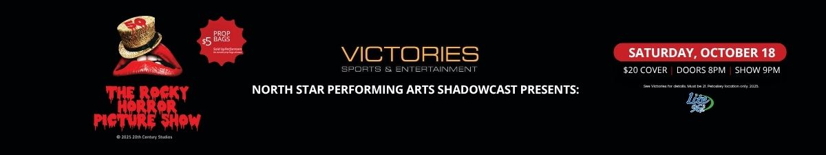 North Star Performing Arts presents a live shadowcast of The Rocky Horror Picture Show celebrating 50 years of cult-classic fun. Costumes and audience participation encouraged. Prop bags available on site.