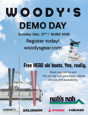 Woody's Adventure Gear is hosting a demo day on Sunday, December 21 at Nub's Nob.